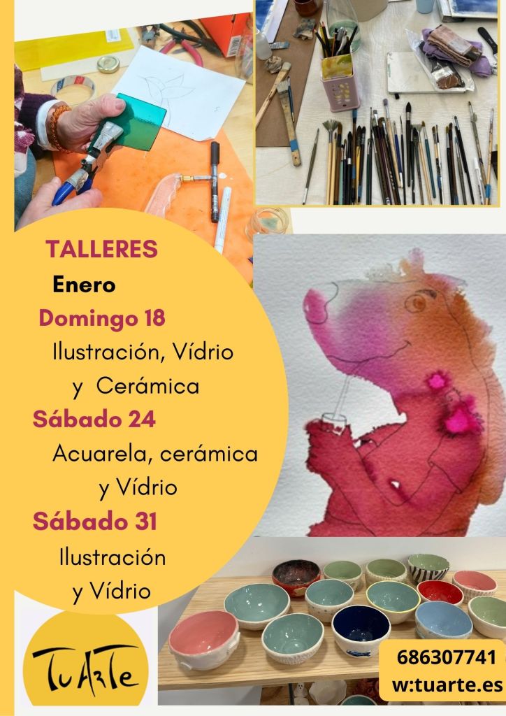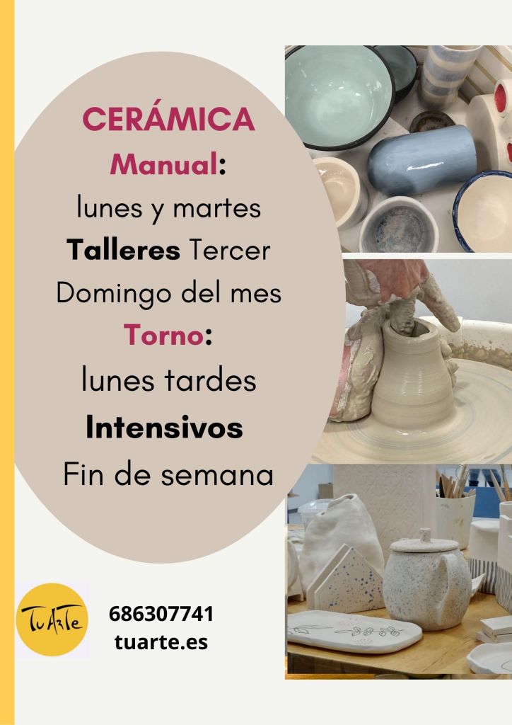 Talleres de Cerámica Manual : Tercer domingo de cada mes de 11 a 13:30h Sábado 24 de enero, haz tu propia pieza y decórala. Nosotras la esmaltaremos y la podrás recoger en unos días. El precio, con todo incluido, es de 48€. También hacemos talleres para grupos en otras fechas, dínoslo y nos organizamos. Clases el primer y tercer sábado del mes, de 11 a 14h 80€/mes.